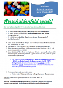 Der monatliche Spieletreff im Siedlerhaus Steinhaldenfeld – jeden letzten Freitag im Kalendermonat von 17 – 21 Uhr